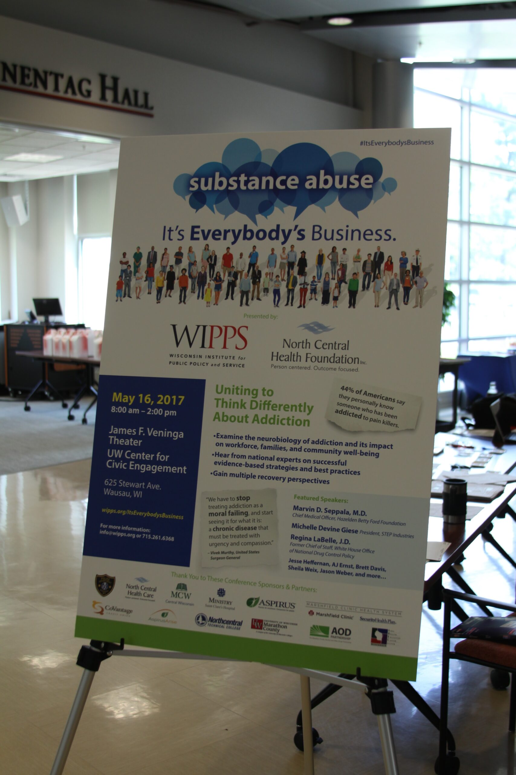 These words by former U.S. Surgeon General Vivek Murphy sum up the goal of the Substance Abuse: It’s Everybody’s Business conference held May 16, 2017 at the Veninga Theater, UW Center for Civic Engagement, in Wausau.